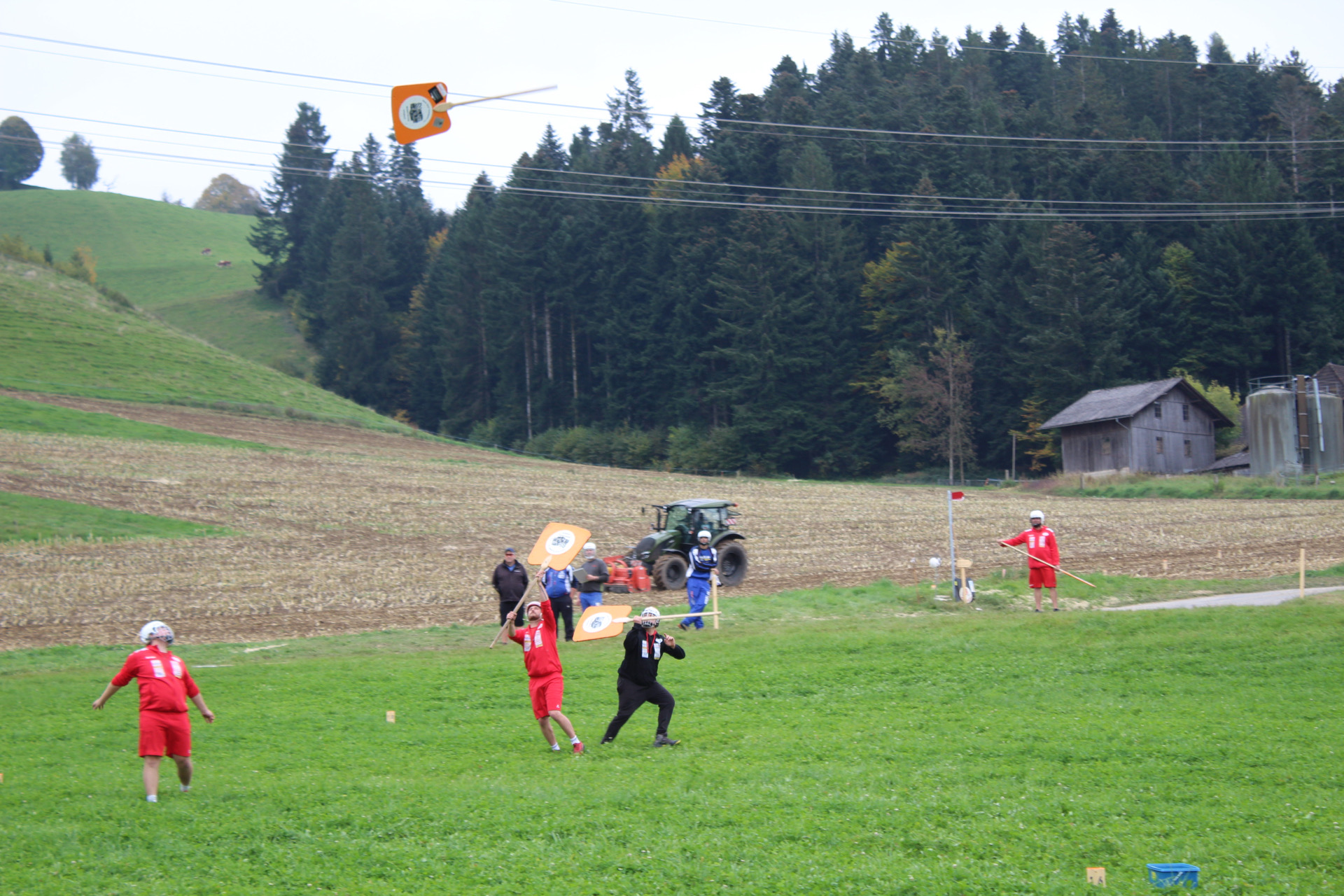 Bei herbstlichem Wetter traten die 10 Mannschaften der 1. Stärkeklasse am Samstag, 11. Oktober 2025 anlässlich des Jubiläumshornussens der HG Unterfrittenbach-Emmenmatt auf dem Ebnit in Zollbrück gegeneinander an.